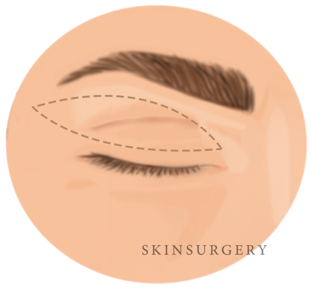 Niet alleen het centrale bovenooglid, maar ook overtollige of verslapte huid aan de zijkant wordt meegenomen.
