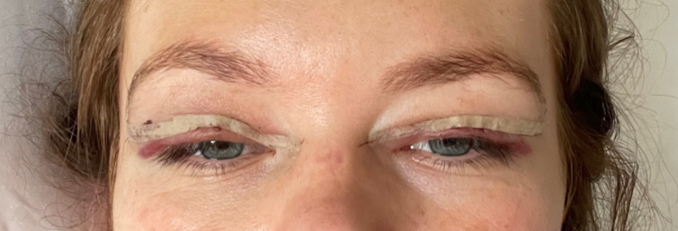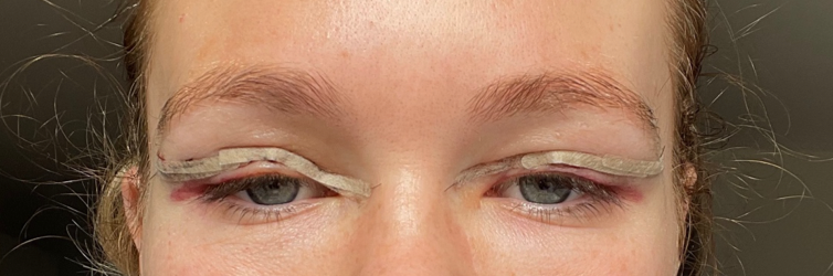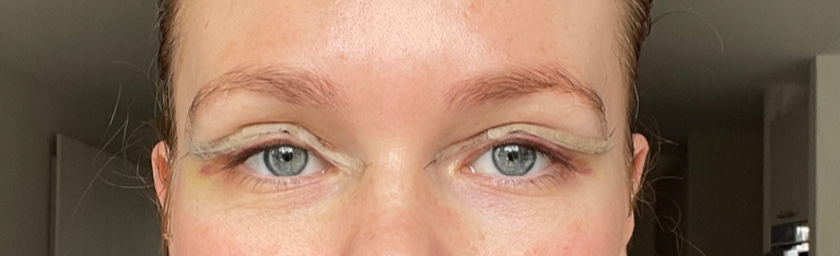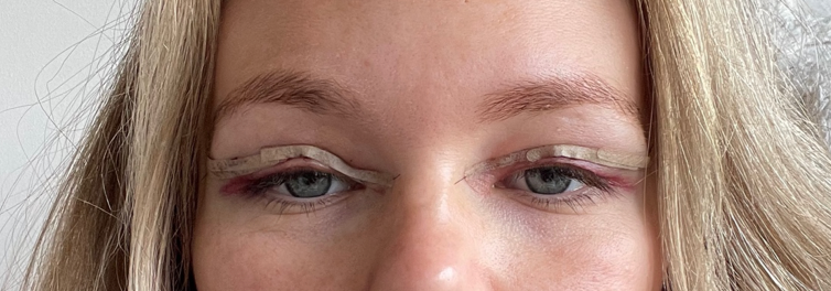 Na ongeveer 2 weken waren mijn korstjes bijna weg en heb ik voor het eerst make-up gebruikt. Wel voelt het nog dof/gevoelloos op de wimpers en het ooglid. Verder voelt het wrijven in de ogen (nog) niet fijn. Hier ben ik dus ook nog steeds voorzichtig mee (ook omdat er nog minimale korstjes zitten) Het litteken is nog wat rood en dik, maar niet heel erg zichtbaar.